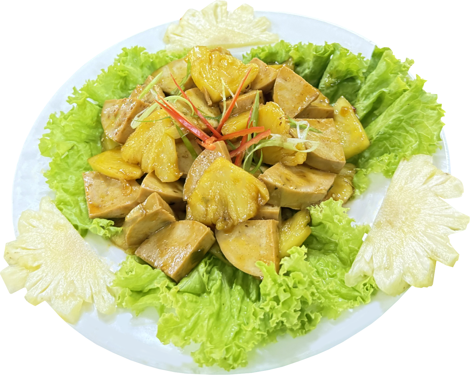 - Chả Lụa Chay Nướng Mỡ Hành: Chả chay gói lá chuối nướng chín mềm, thêm mỡ hành và gia vị tạo nên một món ăn đậm đà, thơm ngon. Kết hợp với cơm trắng và món canh chay sẽ tạo nên bữa ăn hấp dẫn và ngon lành.